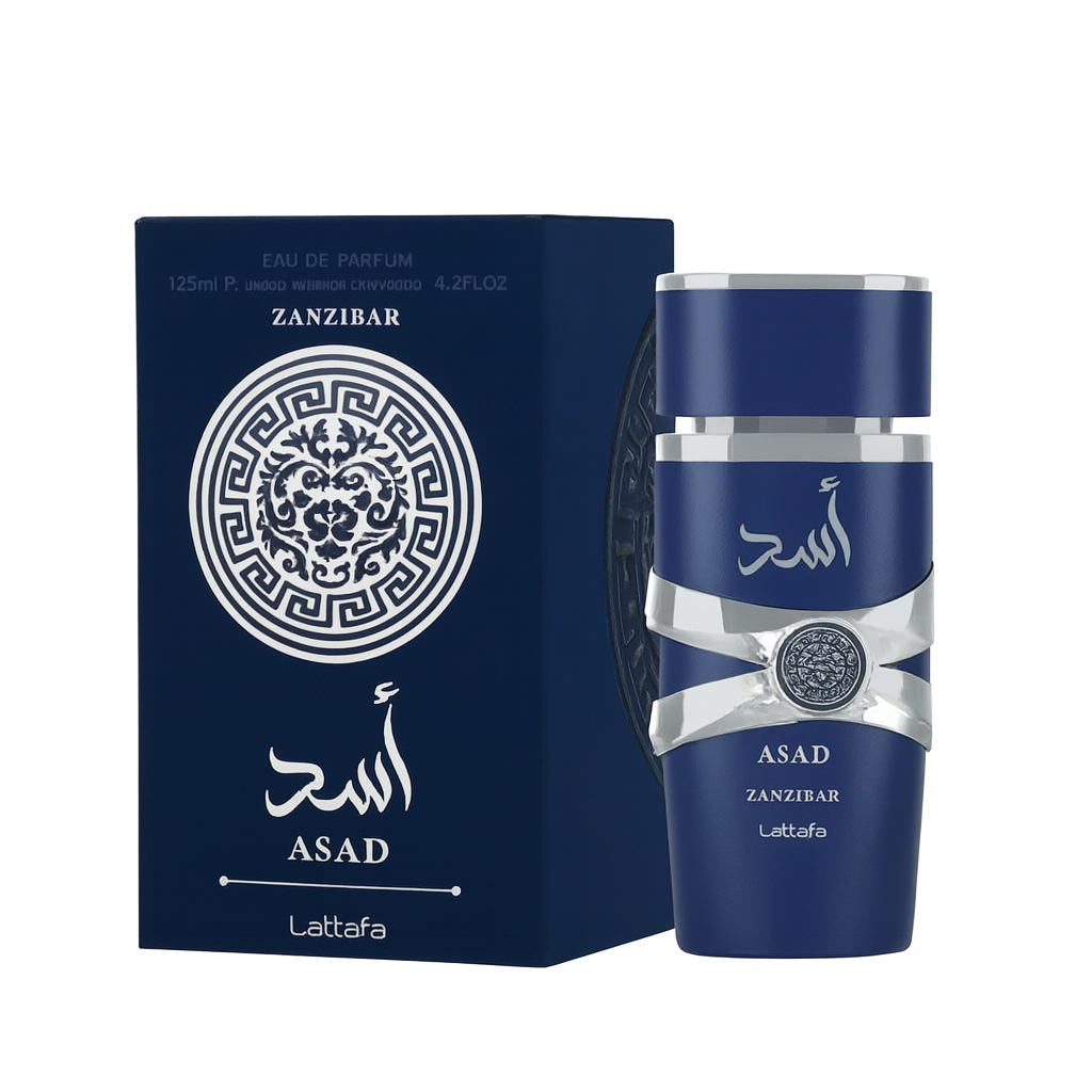Com frasco azul profundo e acabamento metálico elegante, Asad Zanzibar transmite luxo, força e sofisticação — exatamente como seu aroma.